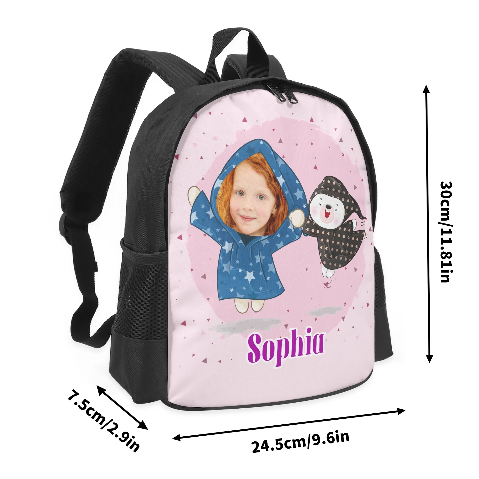 This 13 Inch Kid’s School Bag offers durability and functionality for young students. Crafted from high-quality 300D polyester, it ensures reliability. With a zipper closure, adjustable shoulder strap, and carry handle, transportation is easy. Two side breathable mesh pockets provide extra storage for water bottles or snacks. Perfectly sized for children, it’s an essential school accessory.